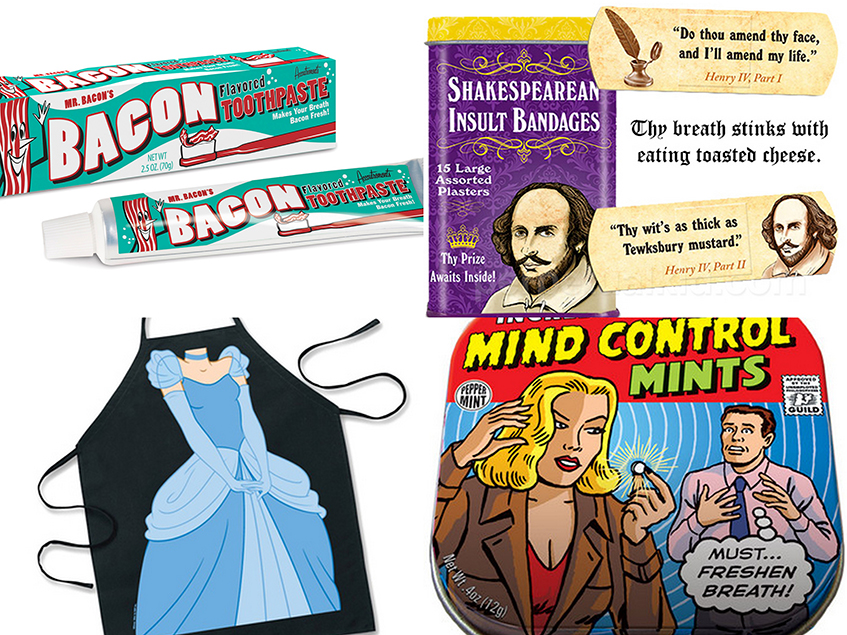 Американский интернет-магазин, доставка из которого не заставит себя ждать. Тут есть пластырь с цитатами Шекспира, зубная паста со вкусом бекона, фартук с телом Золушки и забавная посуда. Да и еще куча всего: конфеты, одеяла, блокноты, держатели для ключей…