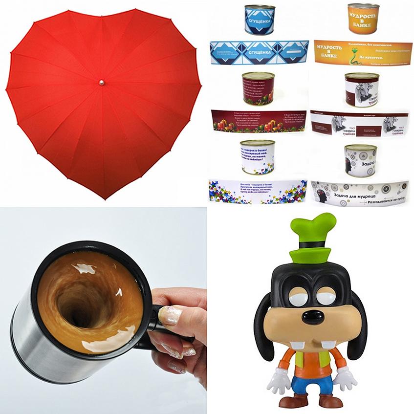 Сайт интересен тем, что любой твой подарок можно упаковать не в типичную коробочку, а в консервную банку. Из-под сгущенки, например. Еще здесь можно найти комплект справок на работу или в учебное заведение (для непутевых студентов). Но самое крутое изобретение – кружка-мешалка. Она делает сразу два дела: сама размешивает сахар и не раздражает твоих коллег стуком ложки по краям.