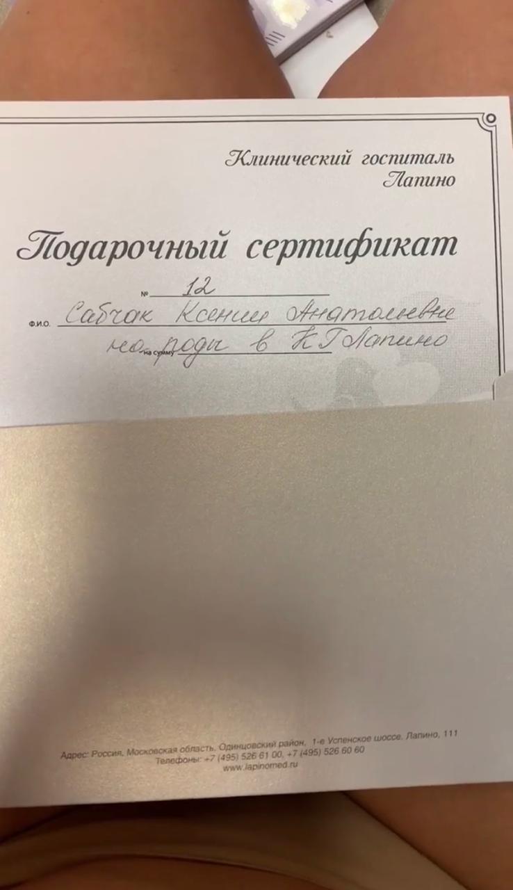 Молодожены продолжают разбирать подарки от гостей и самыми оригинальными делятся с подписчиками. Так, Ксения Собчак выложила сегодня в Stories сертификат на роды в «Лапино», который ей подарили в качестве свадебного подарка. «Это самый остроумный подарок. Пока что мне не надо, но когда-нибудь обязательно воспользуюсь», — прокомментировала Собчак.