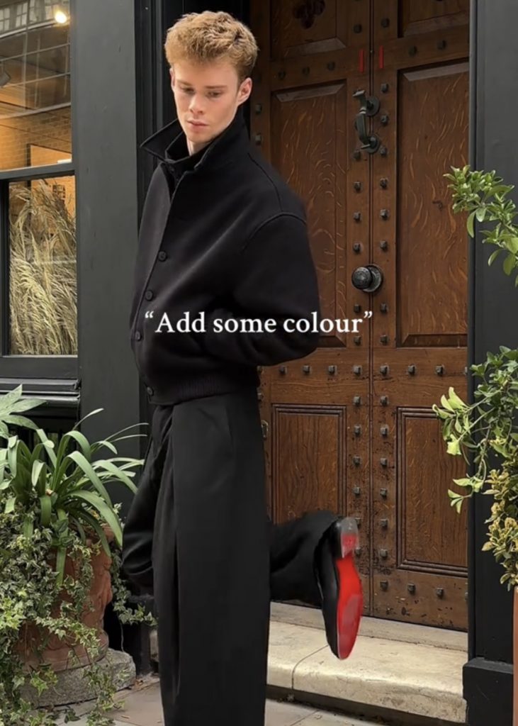Очередной тренд от фэшн-инфлюенсеров, который идеально подойдет тем, кто обожает тотал-блэк образы, но при этом хочет добавить в них немного цвета. Секрет прост – они надевают черную обувь от Christian Louboutin с ярко-красной подошвой. Тренд «add some color» сейчас набирает огромную популярность среди модников. Ведь в последнее время о тотал-блэк аутфитах стали забывать. Они уступили место образам с яркими акцентами. Именно поэтому, не изменяя своему стилю, фэшн-инфлюенсеры нашли способ добавить нужный штрих.