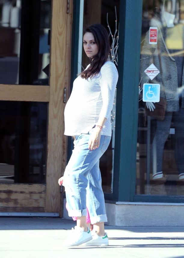 Мила Кунис (33) не из тех мамочек, которые за полсрока до родов ложатся на сохранение и прячутся от папарацци. Актриса вот-вот родит второго ребенка, но это не мешает ей регулярно гулять по Беверли-Хиллз с дочкой Уайатт (2) и любимым мужем Эштоном Кутчером (38).