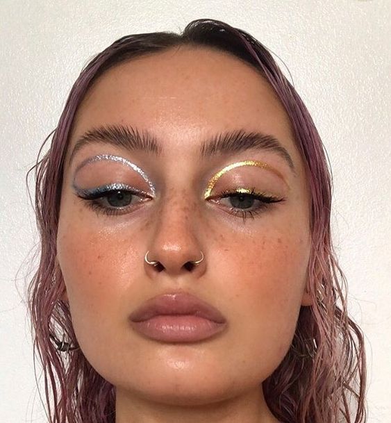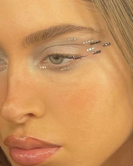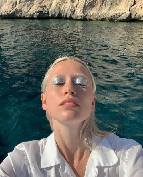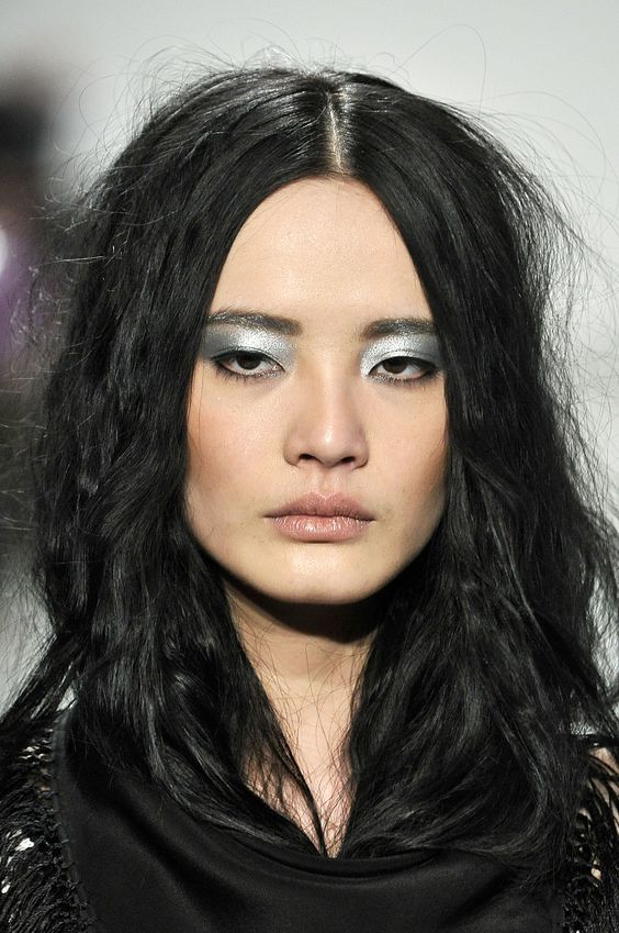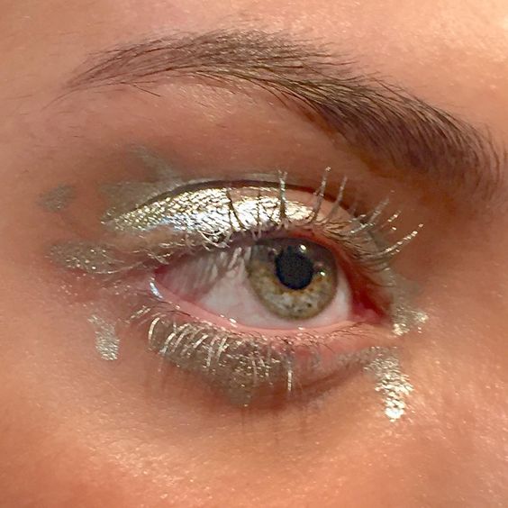 Самый простой способ повторить любой из макияжей — взять жидкие тени серебряного оттенка или пигмент в этом же цвете. Можно покрыть веко полностью или оставить пустоты, положить тени в уголок внутреннего века или нанести их на переносицу — выбранный вариант будет зависеть только от тебя и твоего творческого порыва.