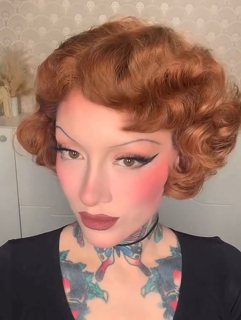 А что насчет макияжа? Макияж 20-х годов — это бледное напудренное лицо, вишневые или алые губы, ягодные румяна, впалые темные глаза и четкие дугообразные брови.