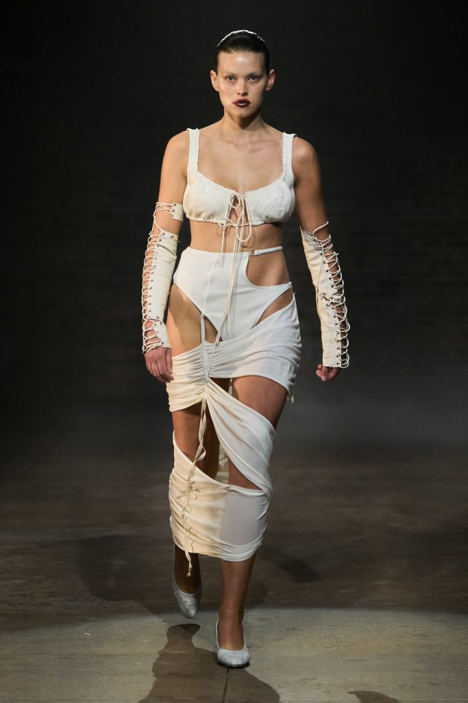 До конца нью-йоркской Недели моды еще целых два дня, но уже сейчас можно смело делать заявление, что подиум захватили сексуальные и очень откровенные образы. Рассматривая новые коллекции No Sesso, Collina Strada, Tia Adeola, SC103, Fe Noel и многих других брендов, ненароком думаешь, что Джулия Фокс все-таки оказала сильное влияние на индустрию. Хотя дело, конечно, не в ней – бывшая пассия Канье Уэста просто оказалась в нужное время в нужном месте. В то время как дизайнерский цех вот уже несколько сезонов делает ставку на сдержанную эротику.