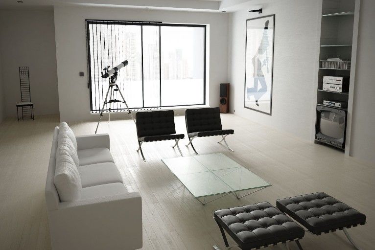 Интерьер культового фильма с Кристианом Бейлом отличается минимализмом и простотой. В гостиной Патрика Бейтмена нет ничего лишнего: только диван, кресла, журнальный столик и подзорная труба. Идеальный вариант для холостяка (ну или психопата-убийцы).