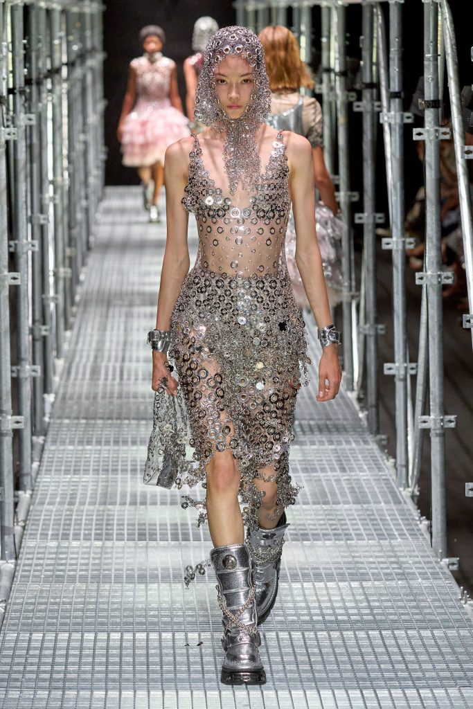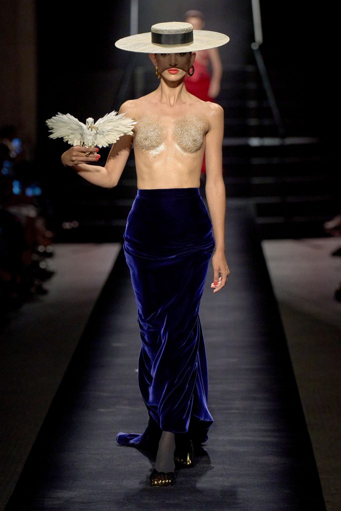 Или рассмотрим образы с имитацией голого тела – самый яркий пример коллаб Jean Paul Gaultier x Lotta Volkoka, платье из которого нещадно банят в соцсетях.