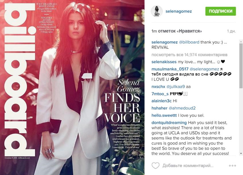 В этом же интервью звезда призналась, что проходит курс психотерапии, чтобы научиться принимать себя, а также, что недавно она прошла лечение от волчанки.