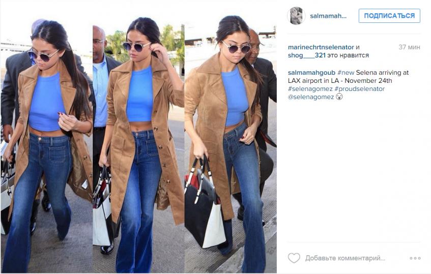 24 ноября папарацци застали Селену в одном из аэропортов Лос-Анджелеса. Было хорошо заметно, что звезда, которая появилась в коричневом плаще, голубом топике и джинсах, продолжает худеть. Стоит признать, что ей это только идет.