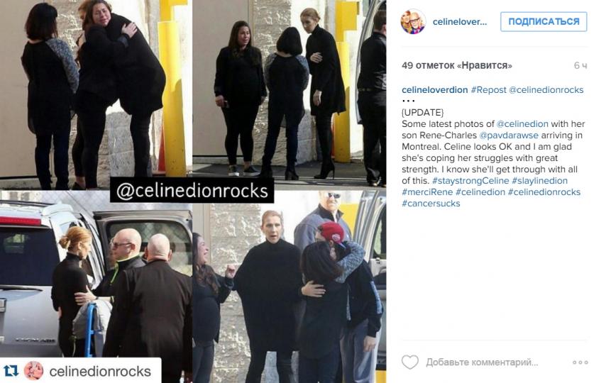 Произошло это в аэропорту Лас-Вегаса, где артистка садилась в частный самолет, на котором отправилась в Монреаль, где пройдет церемония прощания с Рене. Перед отправлением сильно побледневшая и уставшая звезда, облаченная во все черное, долго общалась с друзьями.