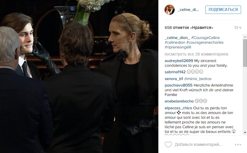 Служба прошла в соборе Notre-Dame Basilica, где 21 год назад состоялась свадебная церемония Селин и Рене. Почтить память проюсера пришли тысячи человек. Для тех, кто не смог лично присутствовать на панихиде, певица организовала прямую трансляцию.