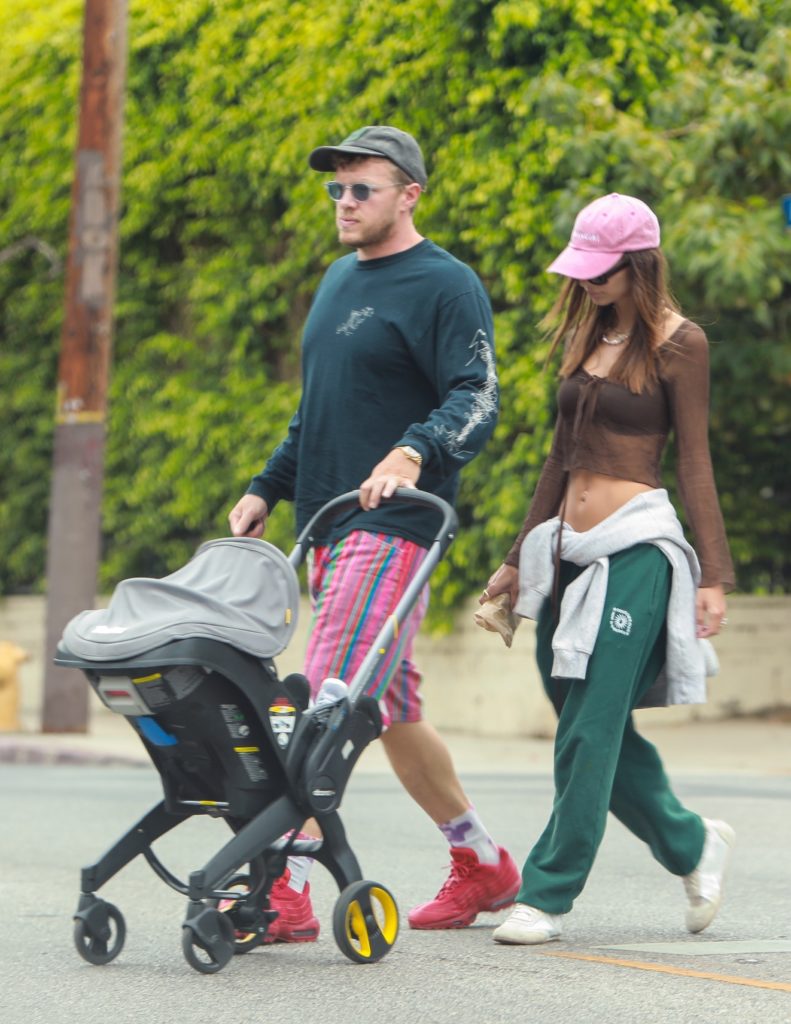 Семейный выход: Эмили Ратаковски в прозрачном топе на прогулке с мужем и ребенком