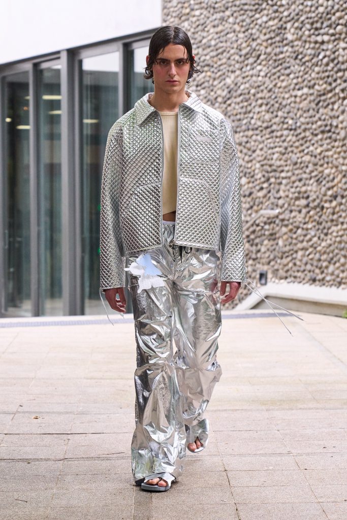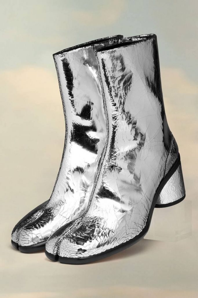 Более спокойные и повседневные образы появились на последних шоу Wales Bonner, Lazoschmidl и Bianca Saunders. Но и это еще не все – пару недель назад Maison Margiela выпустили серебряные таби, а коллекция корейского бренда Kimhekim пополнилась лодочками с металлическим отблеском.