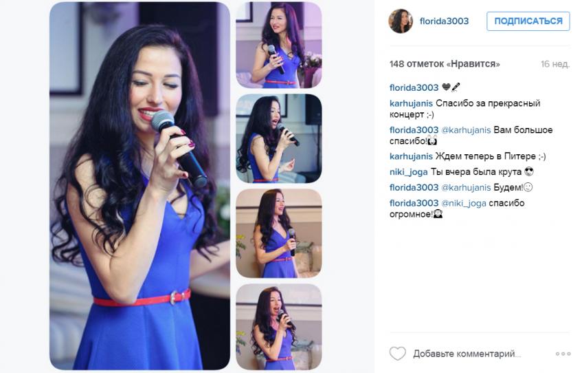 О Флориде известно, что 30 марта ей исполнится 25 лет и что звучное имя выпускницы джазового факультета СПБГУКИ, приехавшей в Питер из Челябинска, — это специальный псевдоним для работы в караоке. Кроме того, девушка просто обожает своих племянников, работу, а также отдыхать в теплых странах. А вот о личной жизни красотки информации пока нет.