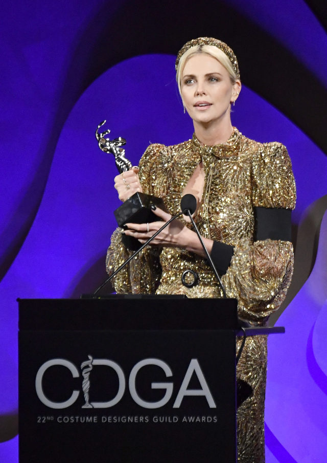 В Лос-Анджелесе прошла 22-я ежегодная церемония Гильдии костюмеров (Costume Designers Guild Awards). Там вручали награды за лучшие костюмы в кино, сериалах, клипах и ТВ-шоу, а актриса Шарлиз Терон выиграла в номинации Spotlight Awards. По мнению жюри конкурса, в 2019 году она была в «центре всеобщего внимания».