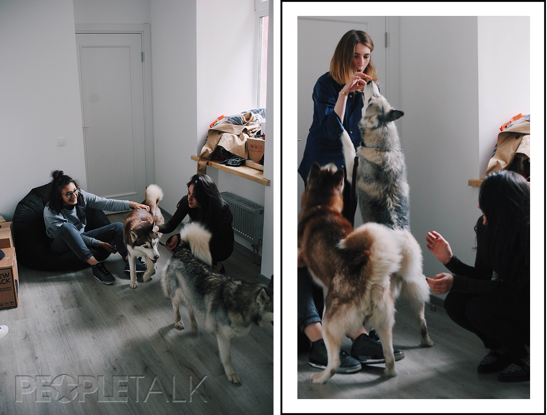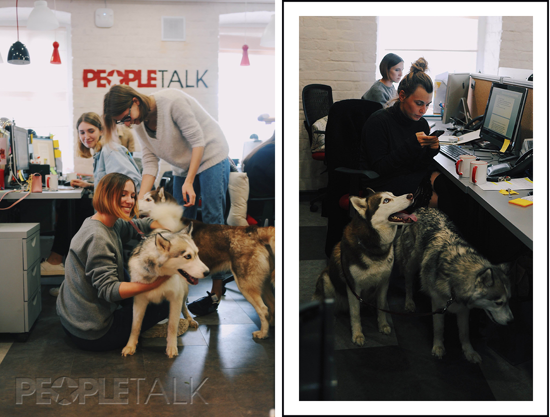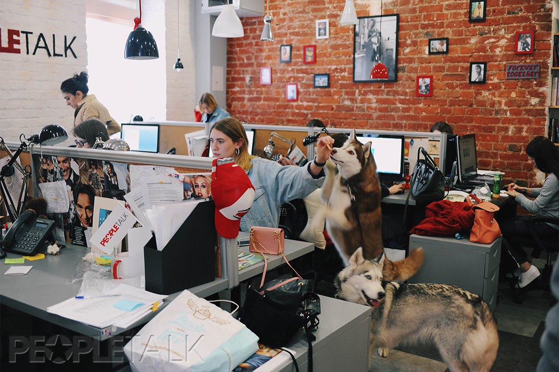 Но бунт на корабле длился недолго. Совсем скоро собаки успокоились и уселись рядом с нашими столами, внимательно наблюдая за рабочим процессом. Главная роль больших и пушистых друзей на работе – это антистресс. Представь: сроки горят, шеф-редактор злится, погода за окном – сущий ад, а рядом с тобой сидит голубоглазая хаски, и никто, кроме тебя, ее не интересует. Смотришь на нее, радуешься, и все как-то сразу становится чуть лучше.