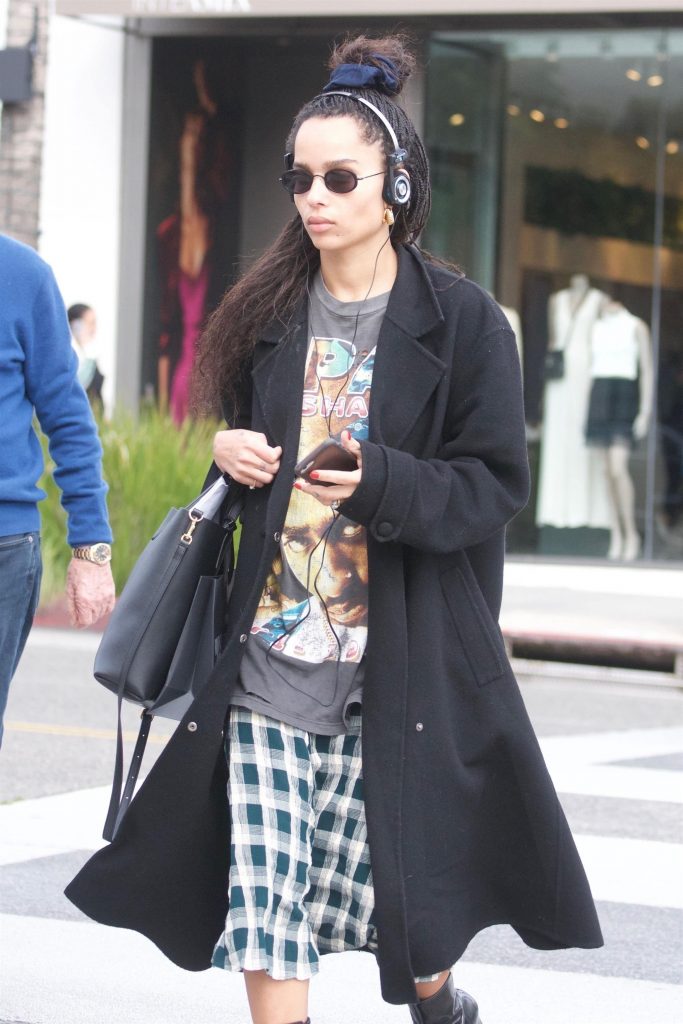В винтажных футболках мы заметили Зои Кравиц сначала в сериале «Меломанка», а затем и на снимках папарацци. С чем их носит актриса? С юбкой в клетку, спортивными брюками и оверсайз пиджаками.