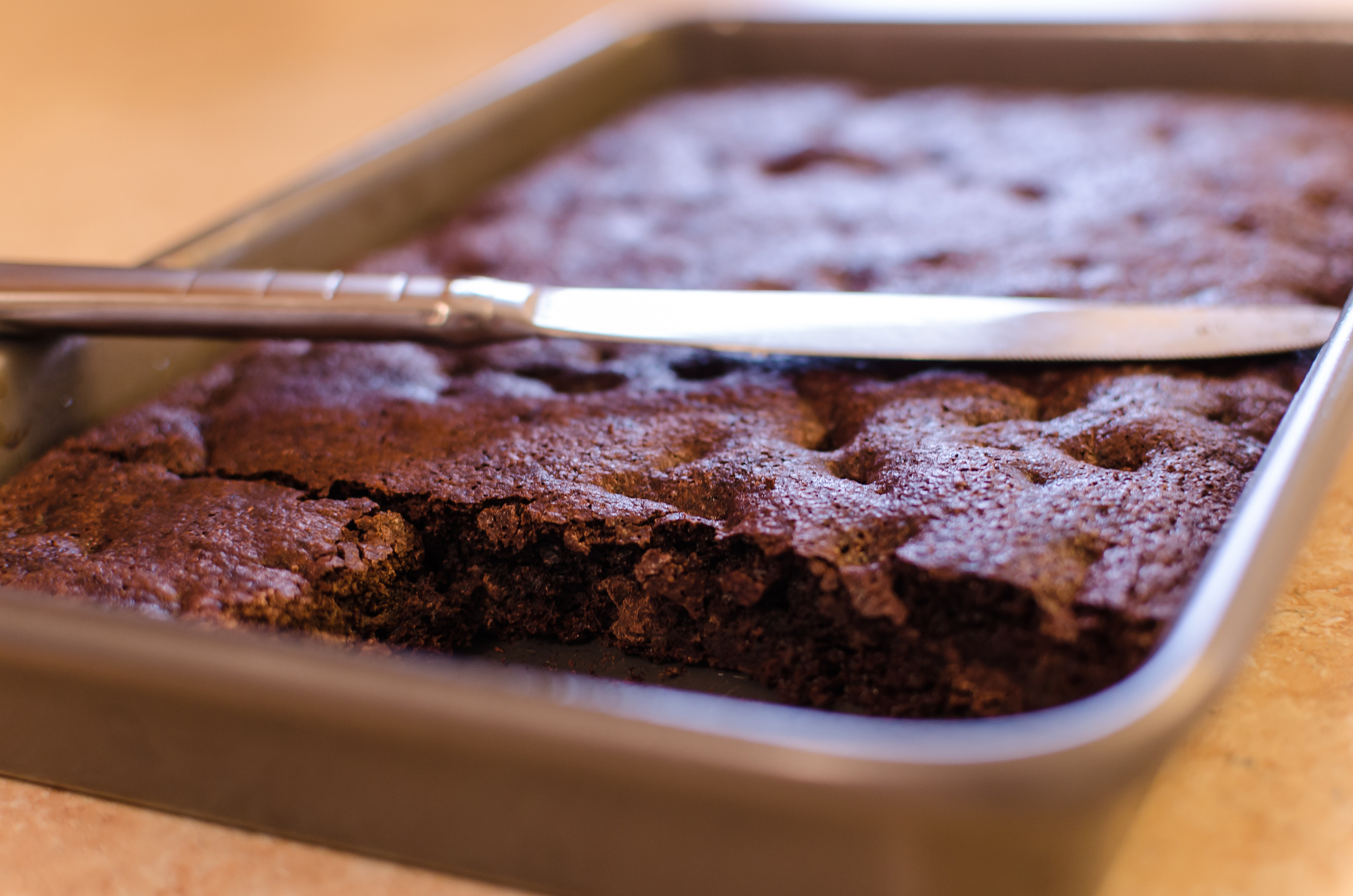 Тебе понадобятся: 150 г сливочного масла, 2−3 ст. какао-порошка, 200 г сахара, 2 яйца, 1 ч. л. ванильного экстракта, 100 г муки.