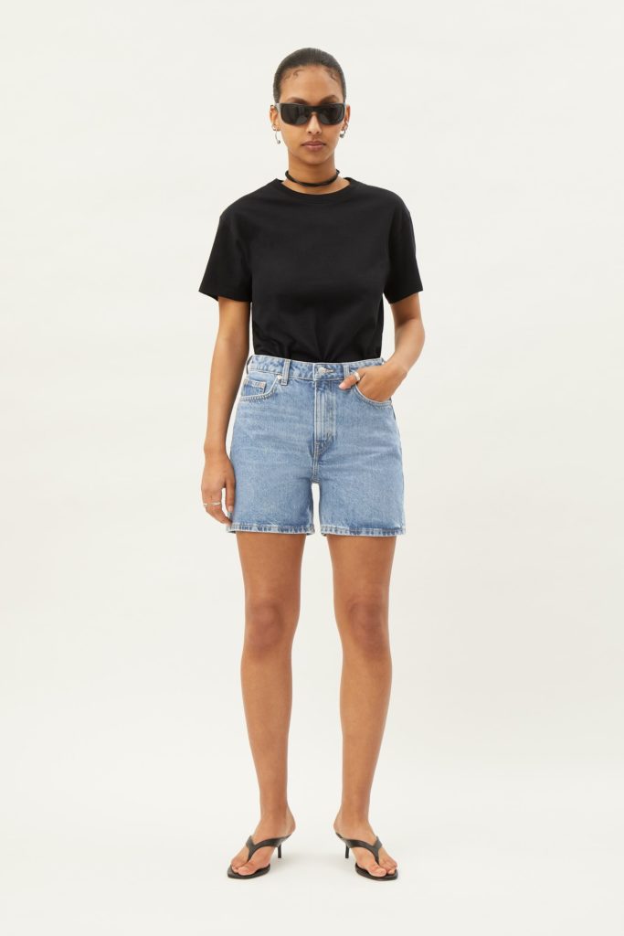 Шорты — один из главных мастхэвов лета. Если в твоем гардеробе уже есть модель из льна, мы советуем выбрать еще один вариант из денима. Например, ультракороткие смело сочетай с кроп-рубашкой на завязках, а бермуды — с ярким бра и акцентной сумкой.