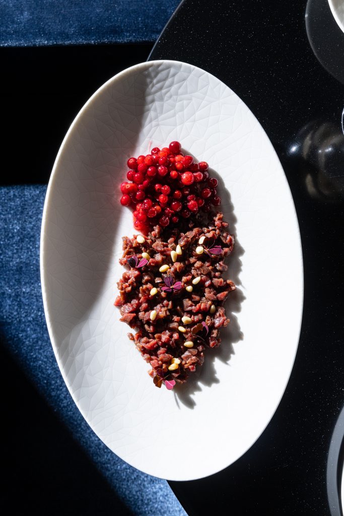Тартар из подкопченной оленины с карельской брусникой