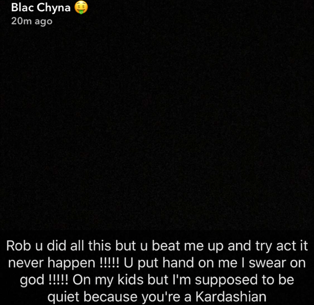 Чайна отнекивалась вяло: всего лишь в своём Snapchat заявила, что тот ее избивал. А молчала она, потому что он – Кардашьян.