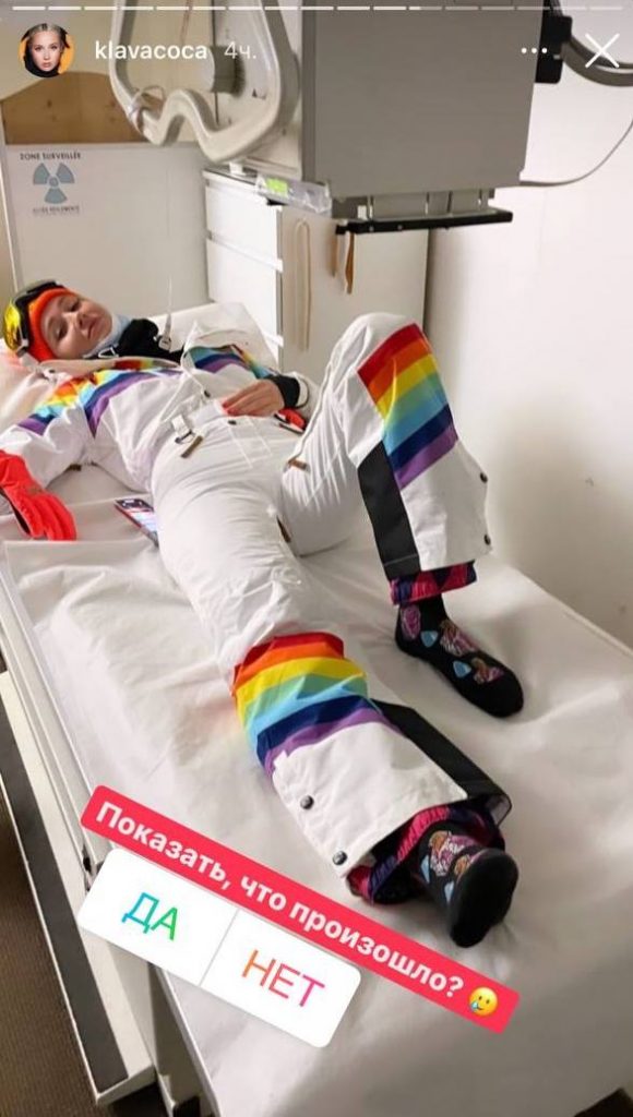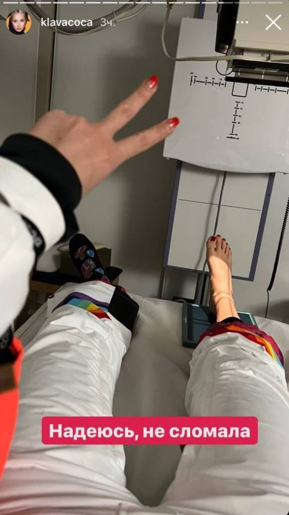 Накануне стало известно, что веселые каникулы Клавы Коки и вовсе закончились травмой ноги. Певица сообщила в своем Instagram, что ее увезли на скоро в травмпункт.