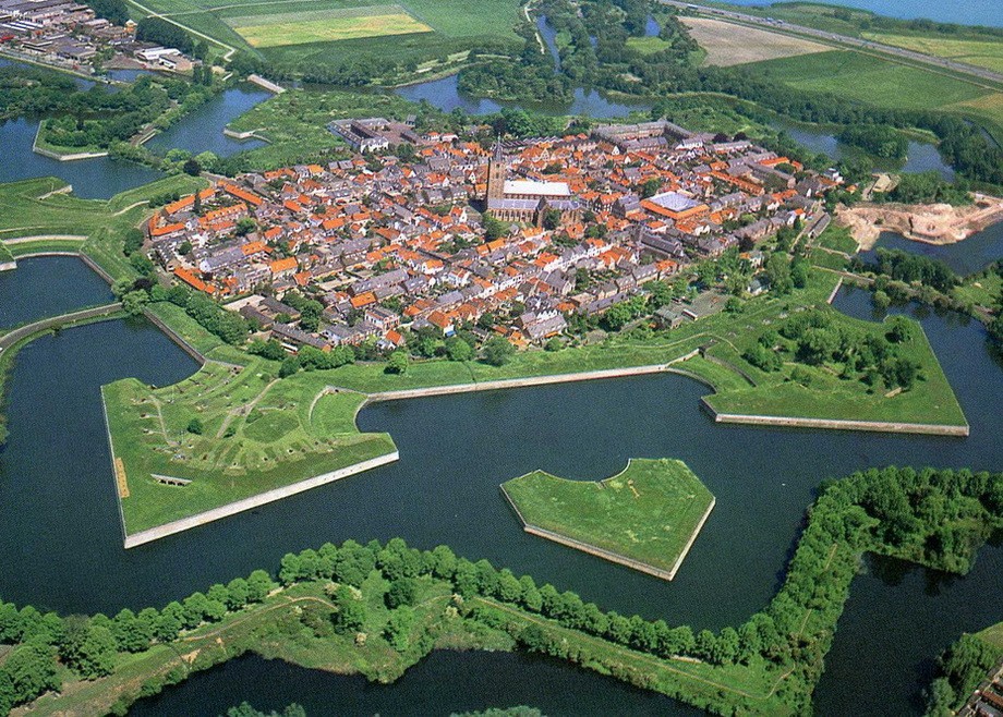 Наарден – город, построенный внутри форта в форме звезды, окруженный крепостными стенами и рвом. Зимой канал, опоясывающий город, замерзает.