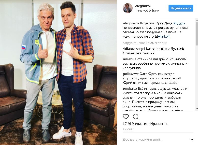 Вчера на YouTube вышло интервью Юрия Дудя (30) с Олегом Тиньковым (49), в котором бизнесмен рассказал о своем отношении к политике, банке Tinkoff, российской системе образования и доходах. Кроме того, Тиньков упомянул, что был знаком с Ургантом (39), когда Иван был еще ребенком.