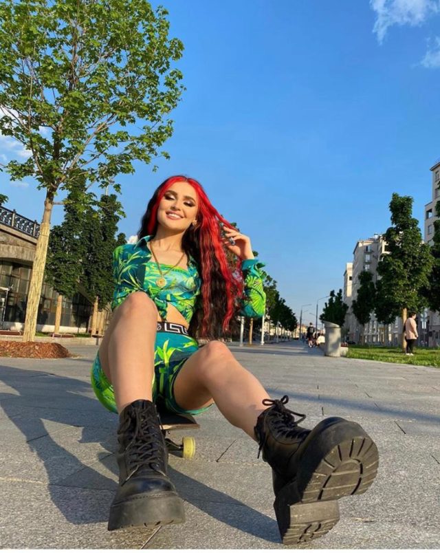 Дина Саева — один из самых популярных тиктокеров в России. На ее аккаунт подписано почти 12 миллионов подписчиков! Звезда постоянно участвует в челленджах, записывает смешные ролики и демонстрирует подписчикам свои наряды. Кстати, недавно она показала новый total look Versace. Найти точно такой же можно на сайте Ssense. Стоит он 113490 рублей (рубашка — 69200 рублей, топ — 6700 рублей, шорты — 37600 рублей).