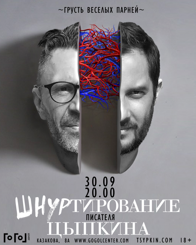 30 сентября лидер группировки «Ленинград» Сергей Шунров (45) станет участником «БеспринцЫпных чтений» Александра Цыпкина. Писатель и музыкант выступят вместе на сцене «Гоголь-центра» с программой под названием «Грусть веселых парней, или ШНУРтирование писателя Цыпкина». Название выбрано не просто так: на творческом вечере Шнуров и Цыпкин исполнят лирические произведения и поговорят на серьезные темы.