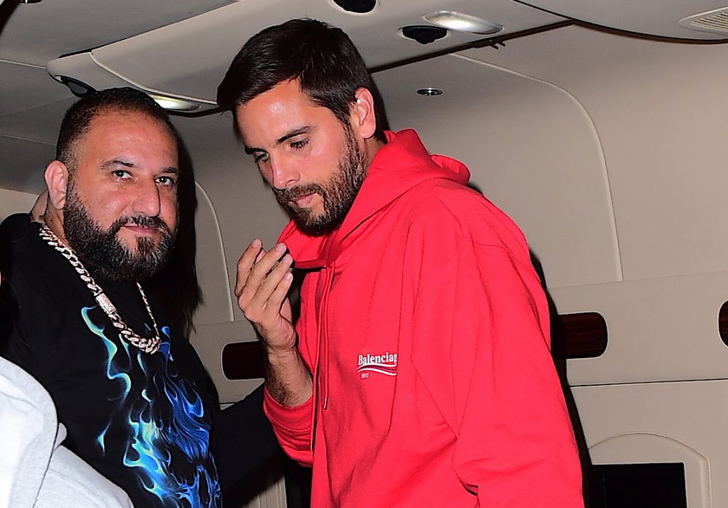 Скотт и его большой бородатый друг (между прочим, по прозвищу «Папочка») выглядели чуть скромнее — на Дисике была красная худи Balenciaga, а на Папочке толстовка с синим пламенем и золотые цепи…