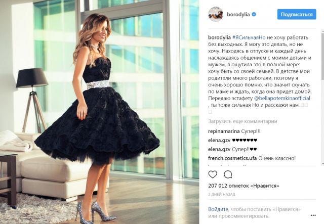 В Instagram набирает обороты флешмоб #ЯСильнаяНо – звезды делятся друг с другом и подписчиками тем, чего им очень не хватает в жизни. Так, ведущая шоу «Дом-2» Ксения Бородина (34) призналась: «Я сильная, но не хочу работать без выходных. Я могу это делать, но не хочу. Находясь в отпуске и каждый день наслаждаясь общением с моими детьми и мужем, я ощутила это в полной мере: хочу быть со своей семьей. В детстве мои родители много работали, поэтому я очень хорошо помню, что значит скучать по маме и ждать, когда она придет домой».