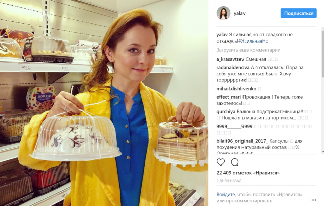 Актриса театра и кино Валентина Рубцова (39) не осталась в стороне от флешмоба, но жаловаться на тяготы и лишения медийной жизни не стала, а призналась в слабости к сладкому: «Я сильная, но от сладкого не откажусь!»