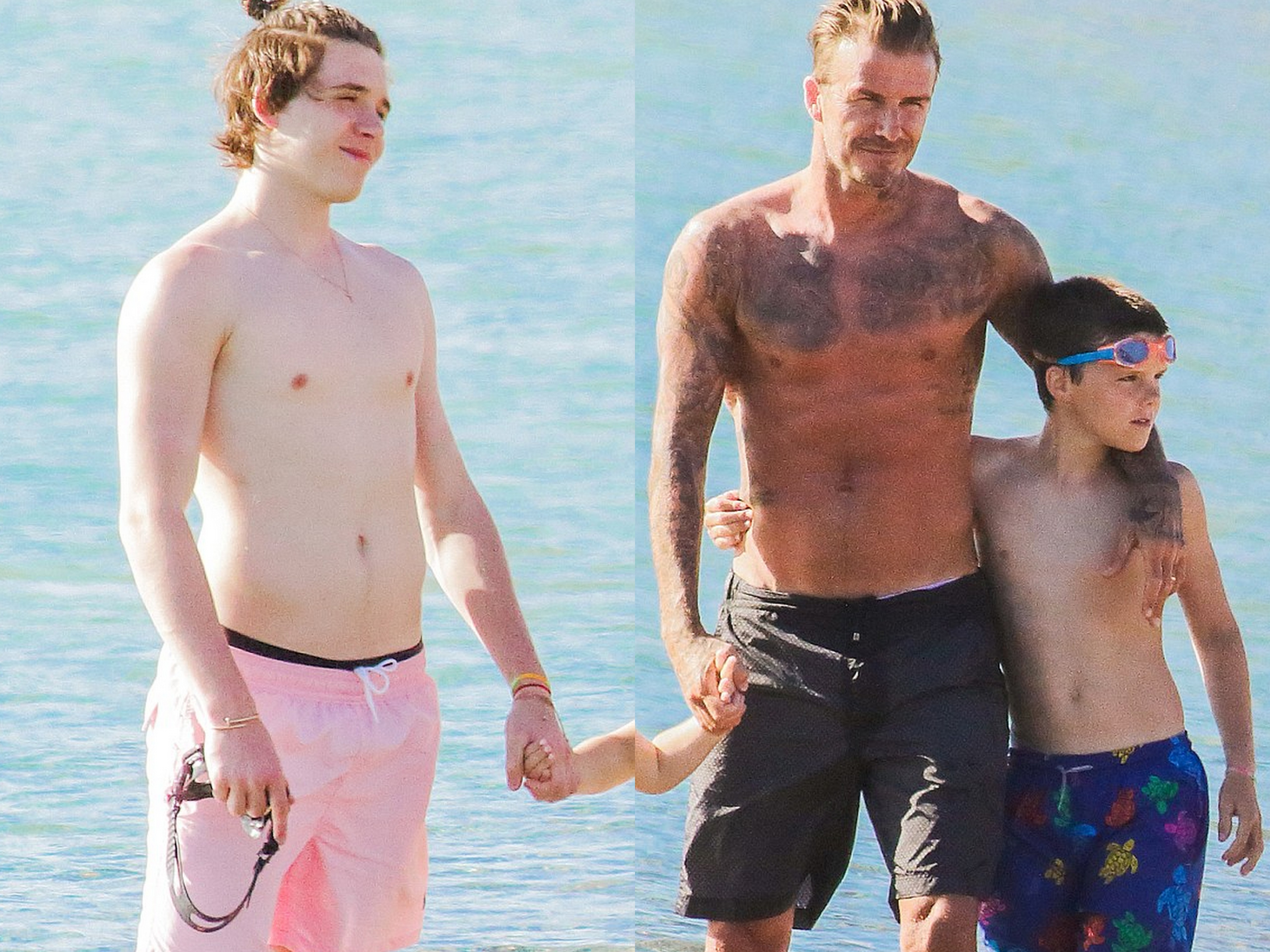 Дэвид (40) постоянно находился рядом с детьми – учил дочь Харпер (4) нырять, а сына Круза (11) – плавать с ластами. Бруклин (17) также не отходил от младших братьев и сестры ни на шаг.