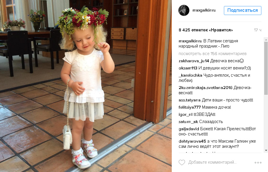 Сейчас Максим Галкин (40) и Алла Пугачева (67) находятся в Юрмале, где телеведущий отмечал свой день рождения. Но вместо моря и достопримечательностей супруги делятся снимками детей. Так Максим выложил в свой Instagram фото дочки Лизы, которая выглядит очаровательно!