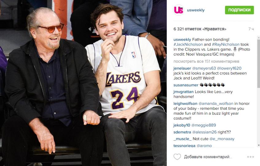 Как известно, и Джек, и его сын Рэй являются ярыми поклонниками баскетбола. Уже не раз они появлялись вместе на матчах, как, например, в минувшую среду на спортивной арене в Лос-Анджелесе, где явно хорошо проводили время.