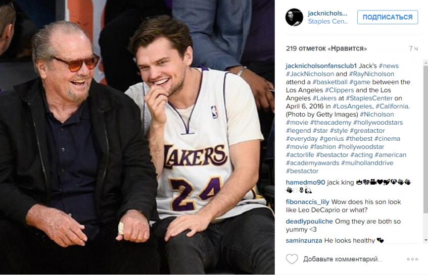 Как известно, и Джек, и его сын Рэй являются ярыми поклонниками баскетбола. Уже не раз они появлялись вместе на матчах, как, например, в минувшую среду на спортивной арене в Лос-Анджелесе, где явно хорошо проводили время.