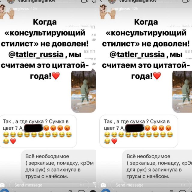 Что может быть приятнее в морозный зимний день, чем… треники. Только трусы с начесом, как у Снежаны Георгиевой. По крайней мере, так она шутит со стилистом Вадимом Галагановым в Instagram.