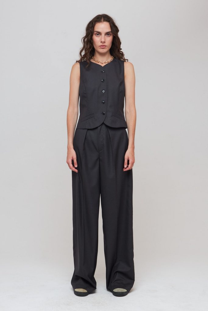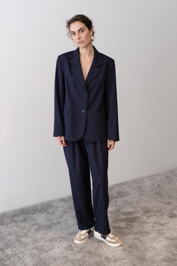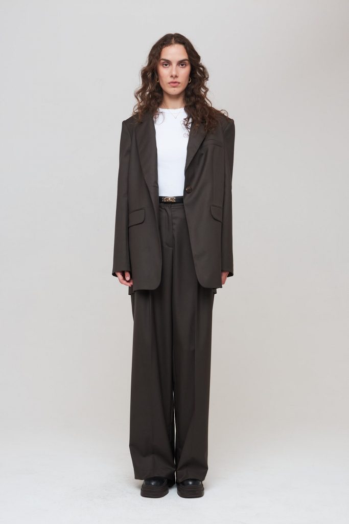 Ищешь идеальный костюм? Тогда предлагаем познакомиться с российским брендом Lesyanebo. В коллекции есть и однобортные пиджаки, и двубортные, а еще костюмы-тройки самых разных оттенков. Для учебного дресс-кода мы предлагаем выбрать модели в черных, серых и темно-оливковых оттенках. Сочетать костюм можно с бежевой водолазкой, рубашкой оверсайз и даже футболкой (если классная руководительница не слишком строгая). Кстати, этот бренд любят не только в России, но и за ее пределами. Среди поклонников марки – Джиджи Хадид. В гардеробе звезды можно найти как минимум три брючных костюма марки.