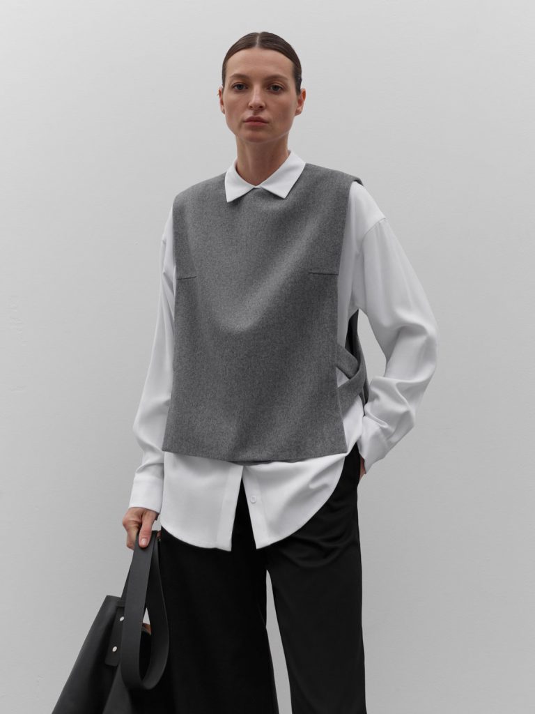 Коллекция питерского бренда GATE31 – минимализм в чистом виде. Ищешь универсальную белую блузку? Да пожалуйста! Мечтаешь о классических брюках? Вот тебе несколько вариантов. Лично мы советуем обратить внимание на укороченную рубашку с поясом, который можно завязать на талии. Такой предмет гардероба идеально подойдет для первого учебного дня – вроде минималистично, но в то же время не выглядит скучно. Образ можно дополнить юбкой макси и слингбэками (туфли с ремешком на пятке ) с квадратным мысом.