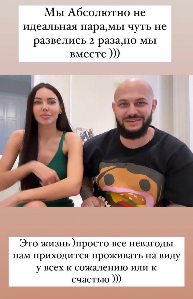 «Мы абсолютно не идеальная пара, мы чуть не развелись 2 раза, но мы вместе. Это жизнь. Просто все невзгоды нам приходится проживать на виду у всех, к сожалению, или к счастью», — сообщила девушка.
