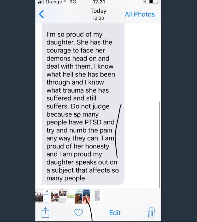 Певицу поддержала ее мать в Twitter: «Я горжусь своей дочерью. Она нашла смелость встретиться и разобраться со своими демонами. Я знаю, через что она прошла и какие травмы перенесла. Не судите строго, потому что огромное количество людей живет с ПТСР и пытается унять боль любым способом».