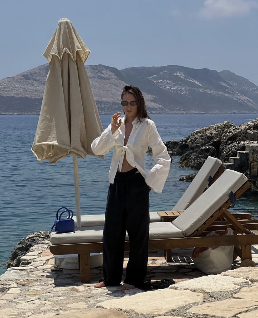 Лен – главный материал лета. В жаркий день вещи из этой ткани послужат спасением от знойного солнца, а еще подарят чувство комфорта и прохлады. К слову, последние несколько сезонов дизайнеры активно используют эту легкую ткань в своих коллекциях. Идеальные платья и шорты-бермуды из плотного льна ты могла видеть у Jacquemus, а костюмы и комбинезоны на показе весна-лето 2022 Sportmax. Этим летом в лен можно облачиться хоть с ног до головы, а можно выбрать только один предмет гардероба из этого материала. Мы предлагаем сделать выбор в пользу оверсайз рубашки – ее можно носить и с брюками, и с юбками, и с шортами.