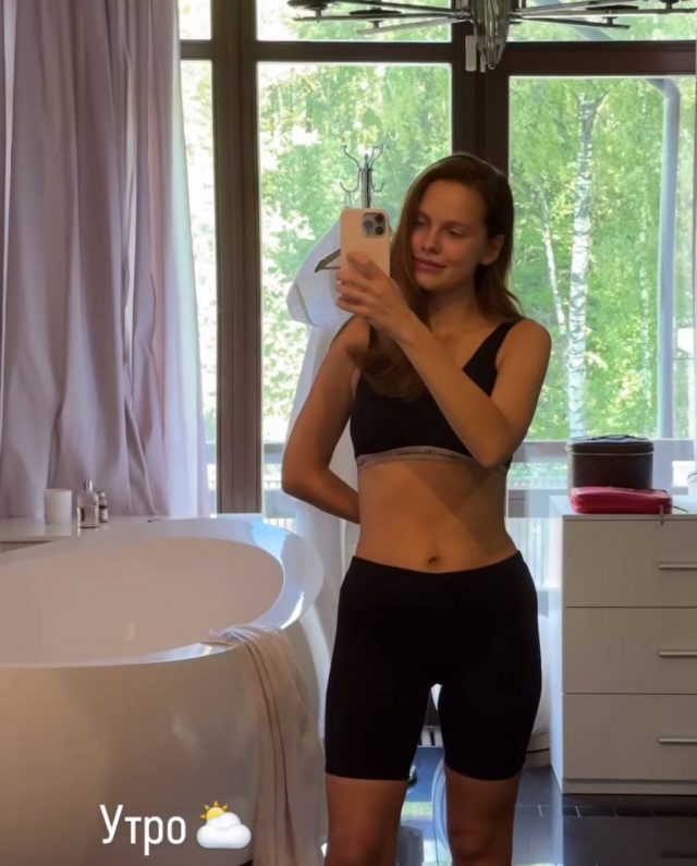 Клюкина выложила в Stories фото, на котором позирует перед зеркалом. Она одета в черные обтягивающие велосипедки и темный топ. Так, девушка показала свое тело, и мы, признаться, в восторге. Что нужно делать, чтобы так выглядеть после родов?