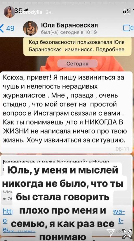 Этой теме Бородина и Барановская посвятили еще несколько Stories. Ксения выставила сообщение коллеги в свой Instagram, а Юлия, в свою очередь, написала гневное обращение: «Как мой ответ на вопрос одному из моих подписчиков можно было связать с Ксенией и ее мужем, придумать из этого скандальную новость и с удовольствием ее транслировать, лично мне непонятно. А кто-то для этого на работу ходит. Хорошо, что Ксюха адекватно все воспринимает».