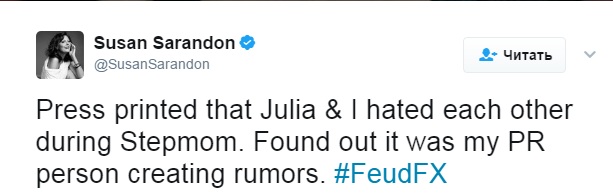И вот, спустя 20 лет Сарандон зачем-то вернулась к этой теме и наконец-то рассказала, откуда у этих сплетен растут ноги. «Оказывается, эти слухи начал мой PR-менеджер», — написала Сарандон на своей страничке в Twitter.