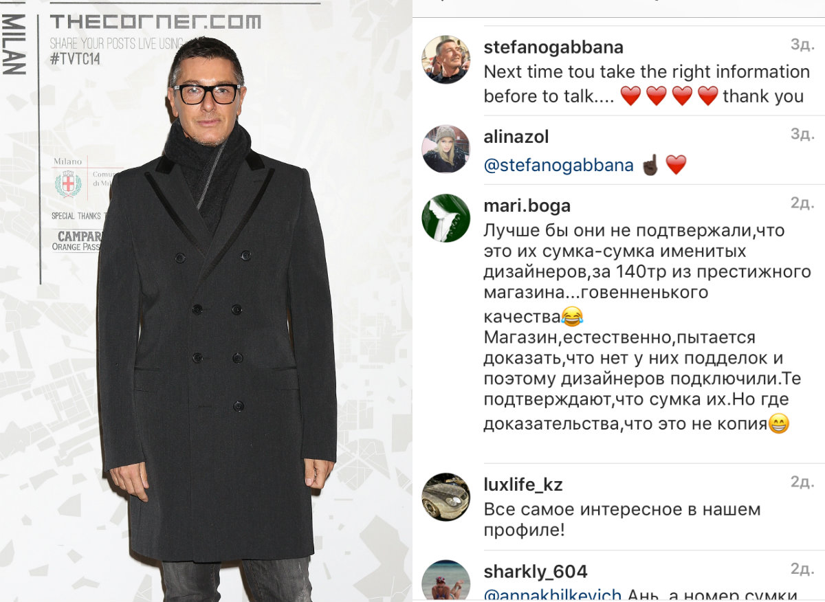 Пресс-служба магазина быстро уладила проблему и предоставила все необходимые бумаги. «Приношу свои извинения. Я не со зла», — признала свою неправоту звезда «Универа». Но дело на этом не закончилось. Сначала за ЦУМ заступилась Ксения Собчак (34), а теперь… сам Стефано Габбана (53).