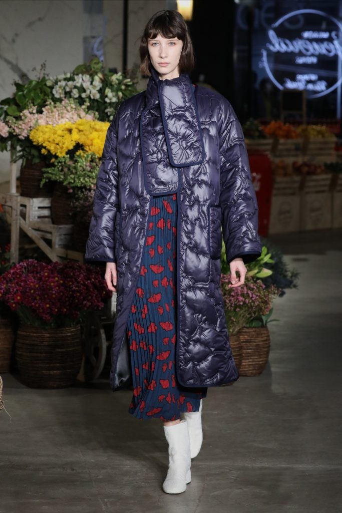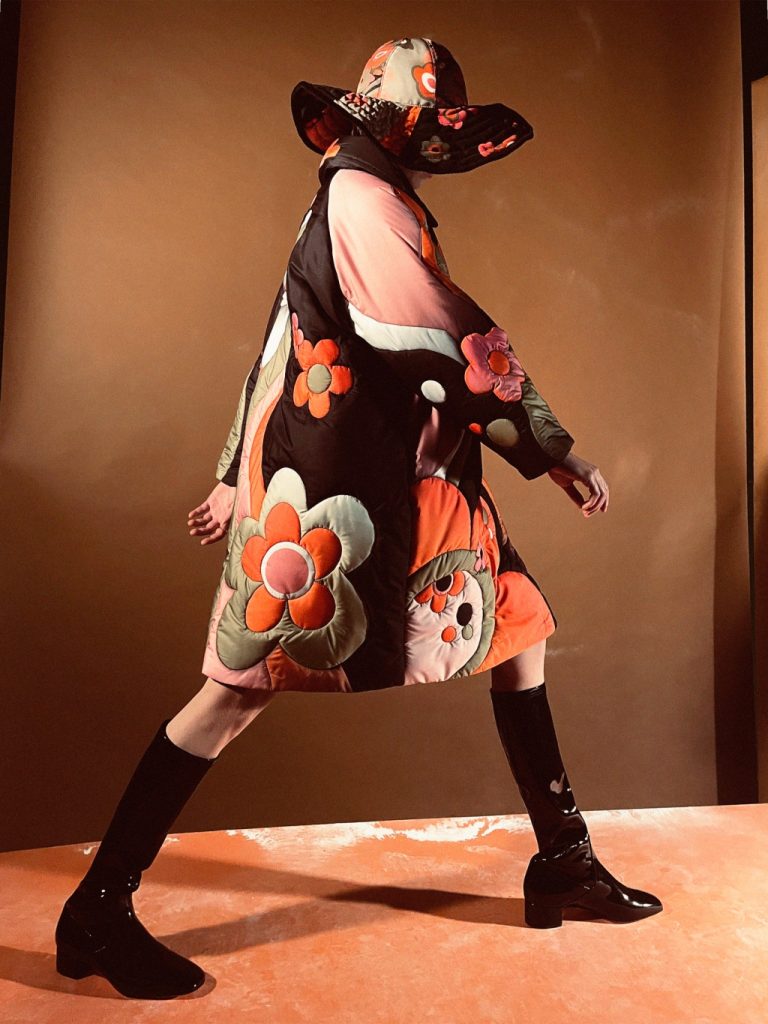 Оверсайз пуховики достигли своего максимума не только в ширину, но и в длину. И вот Rick Owens представляет модель с имитацией шлейфа, Staud работают над длиной дутых жилетов, а Emilio Pucci подхватывают тенденцию и выпускают модель макси с цветочным принтом.