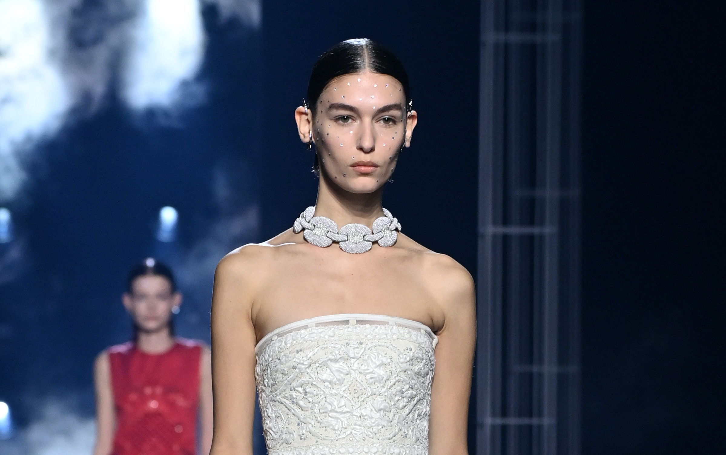 Совсем не обязательно покрывать все лицо россыпью кристаллов, как это сделали визажисты на показе Fendi Couture SS 2022, будет достаточно нескольких акцентов.