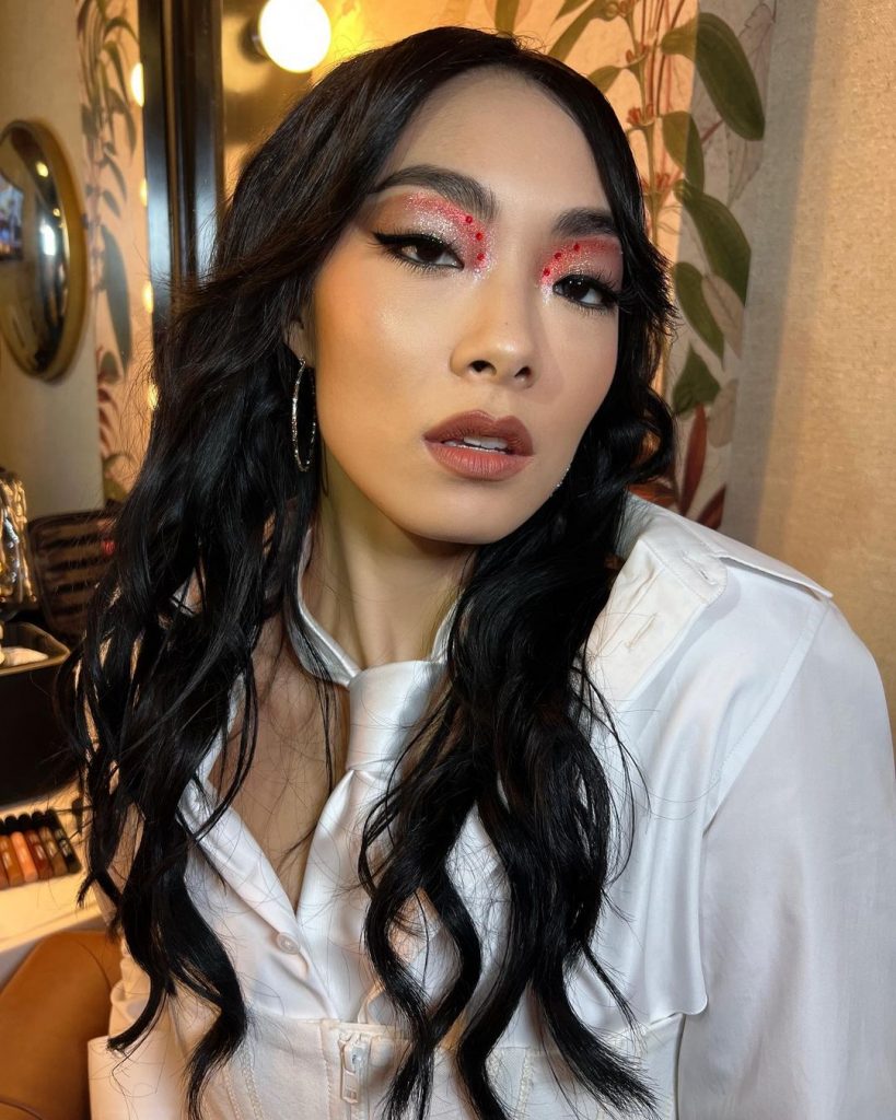 Стразы в качестве продолжения стрелки — прием, который особенно любят звездные визажисты. С таким макияжем часто выступают на сцене Ариана Гранде и Дуа Липа. Поскольку в этом случае стразы находятся на менее подвижной части века, они будут держаться дольше.