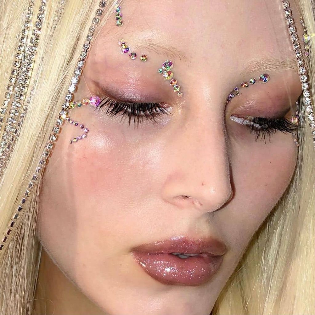 Стразы везде — на лице, волосах и даже зубах. Как следовать главному макияжному тренду этого лета?